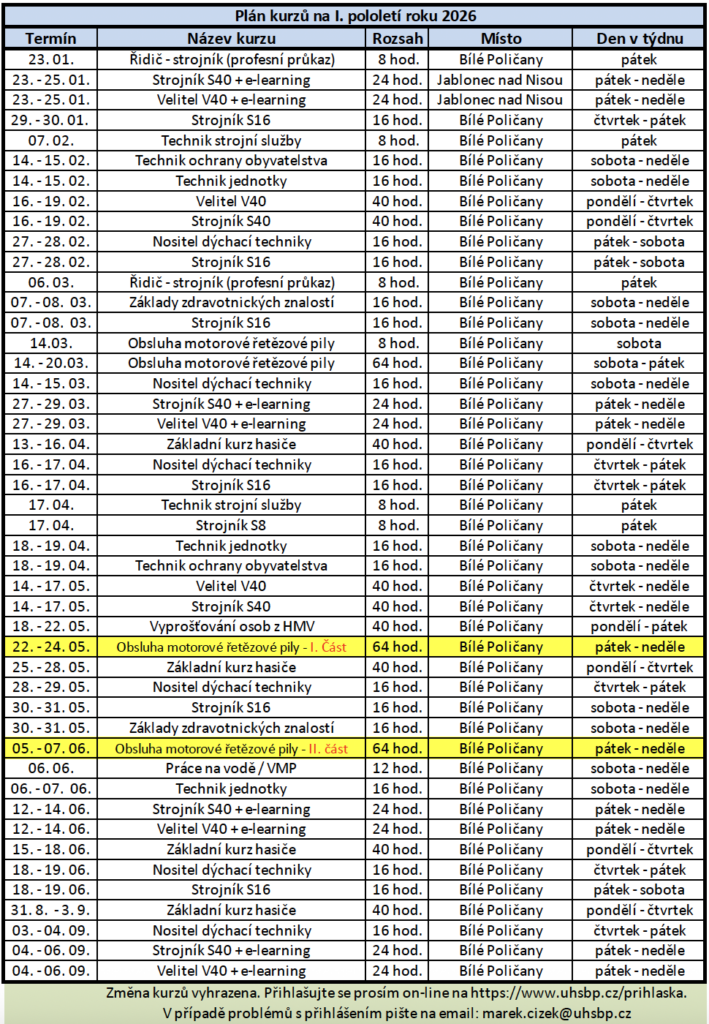Zveřejňujeme plán kurzů na první pololetí roku 2026 Nový plán kurzů naleznete v sekcích Kurzy a Ke stažení. Zároveň jsou termíny kurzů zveřejněny v kalendáři na úvodní stránce.
